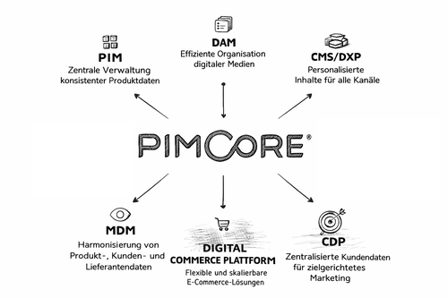Pimcore bildet diese Prozesse nicht als „Add-ons“ ab, sondern als Systemprinzip. Die Plattform ersetzt oft mehrere Tools gleichzeitig (PIM/DAM/CMS/Workflow), schafft eine „Single Source of Truth“ und reduziert Fehler, Abstimmungsschleifen und manuelle Arbeit.